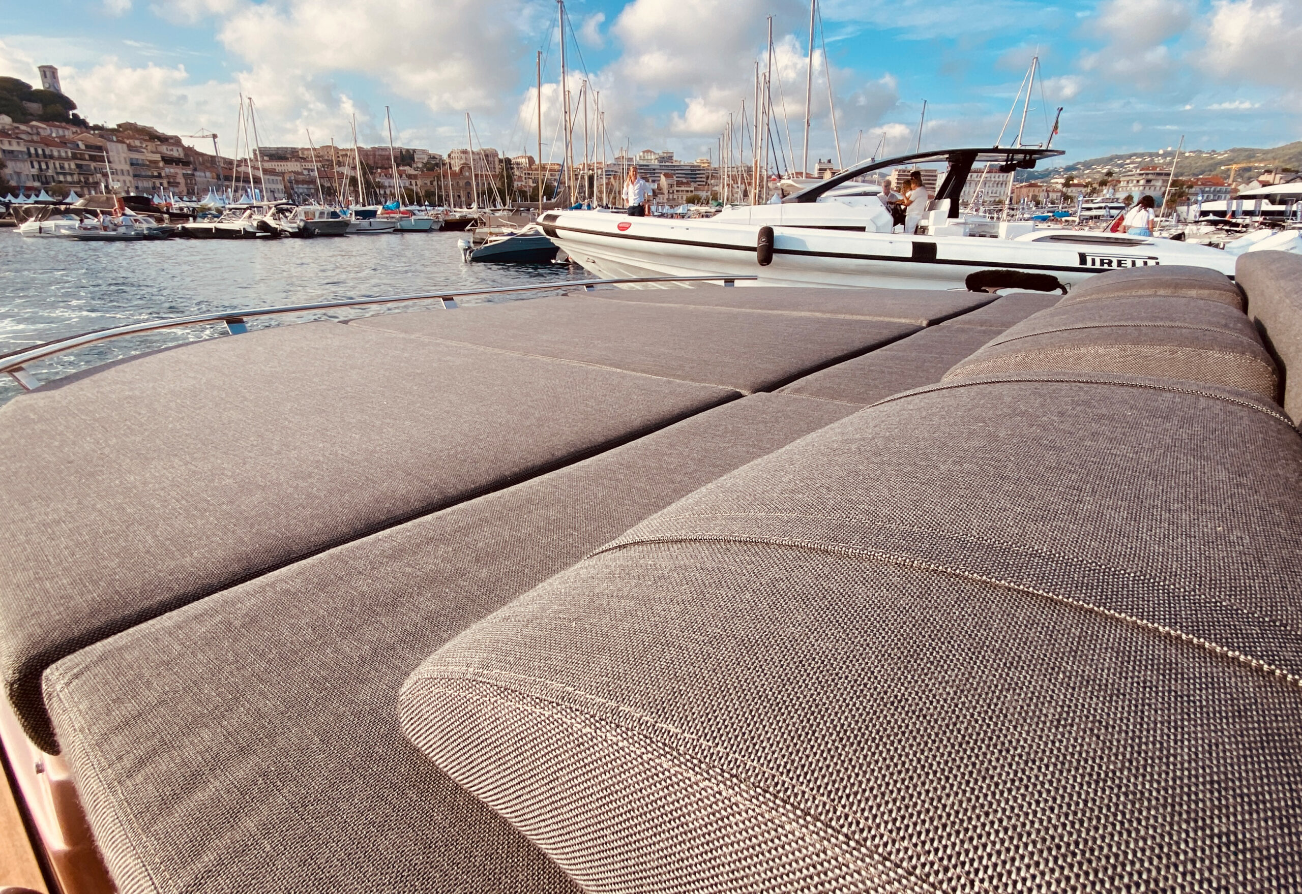 Presentada por primera vez en el Cannes Yachting Festival 2023, es fruto de la colaboración entre el astillero y el arquitecto y diseñador naval Christian Grande. Esta Maxi rib se ha creado con el deseo de combinar la deportividad de este tipo de embarcaciones con el confort típico de una embarcación de crucero.