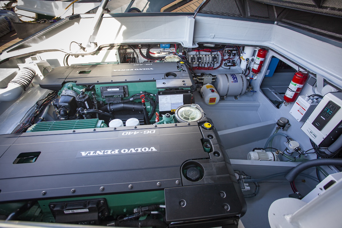 La unidad que hemos probado está equipada con dos motores Volvo Penta D6 de 440 Hp cada uno, con transmisión por cola Aquamatic Duo-prop Drive. Como opcional, es posible equipar dos Volvo Penta V8 6.2L de 430 Hp a gasolina.