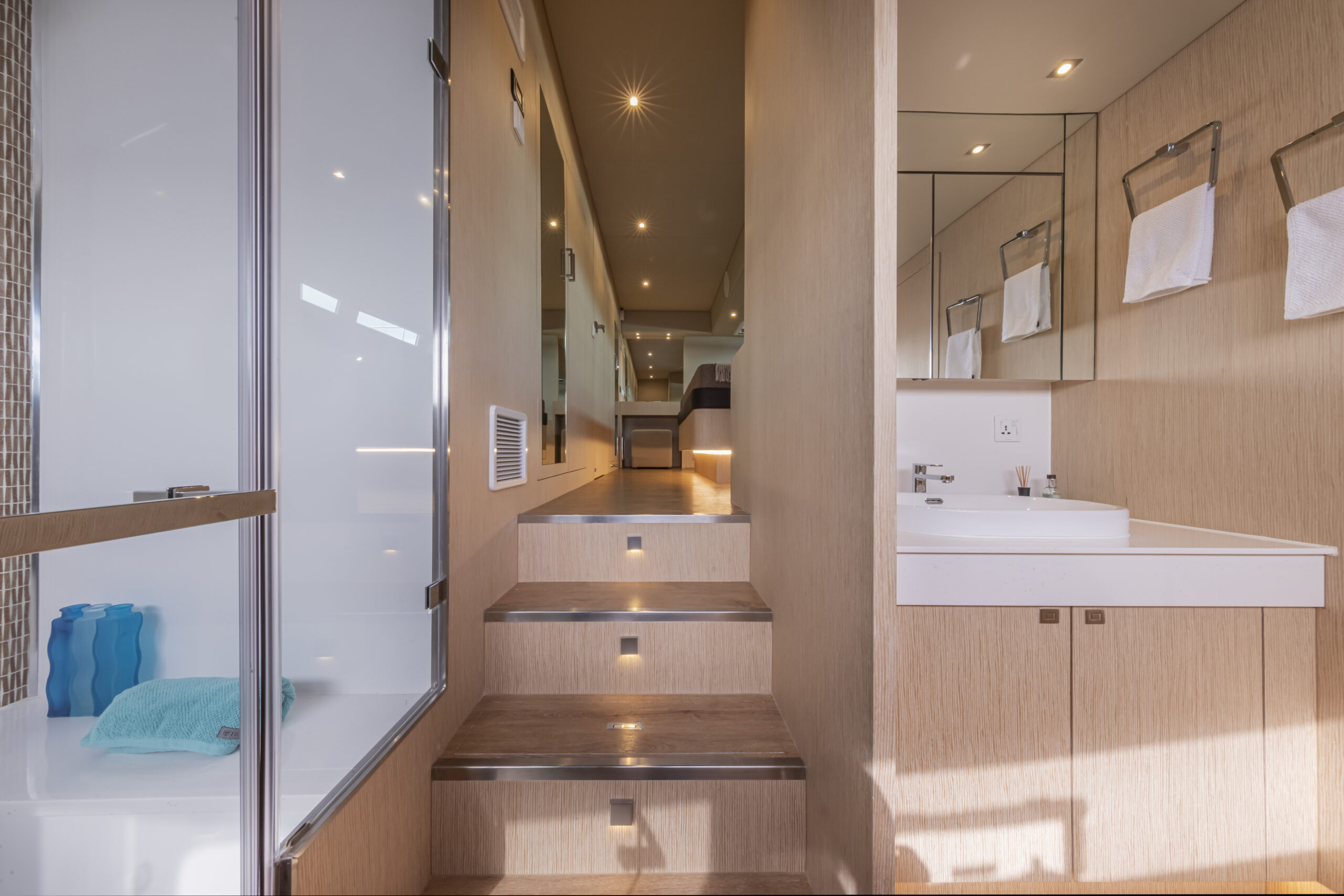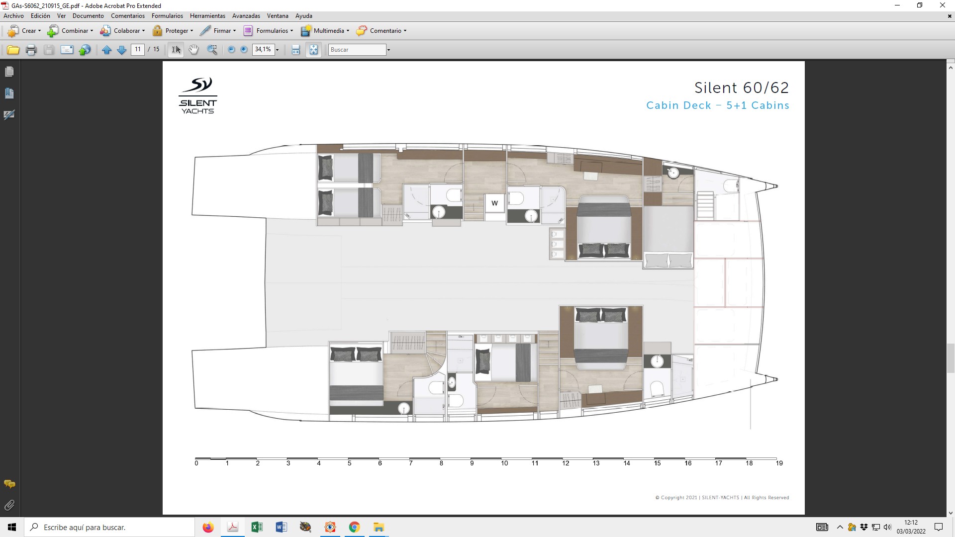 En el caso de la unidad navegada, el Silent 60 presentaba el lado de babor con dos cabinas y cama doble en cada una de ellas, además de disponer de un aseo completo en suite; y un camarote de armador en la banda opuesta, también con su aseo completo, además de cuatro camarotes con baño para la tripulación.