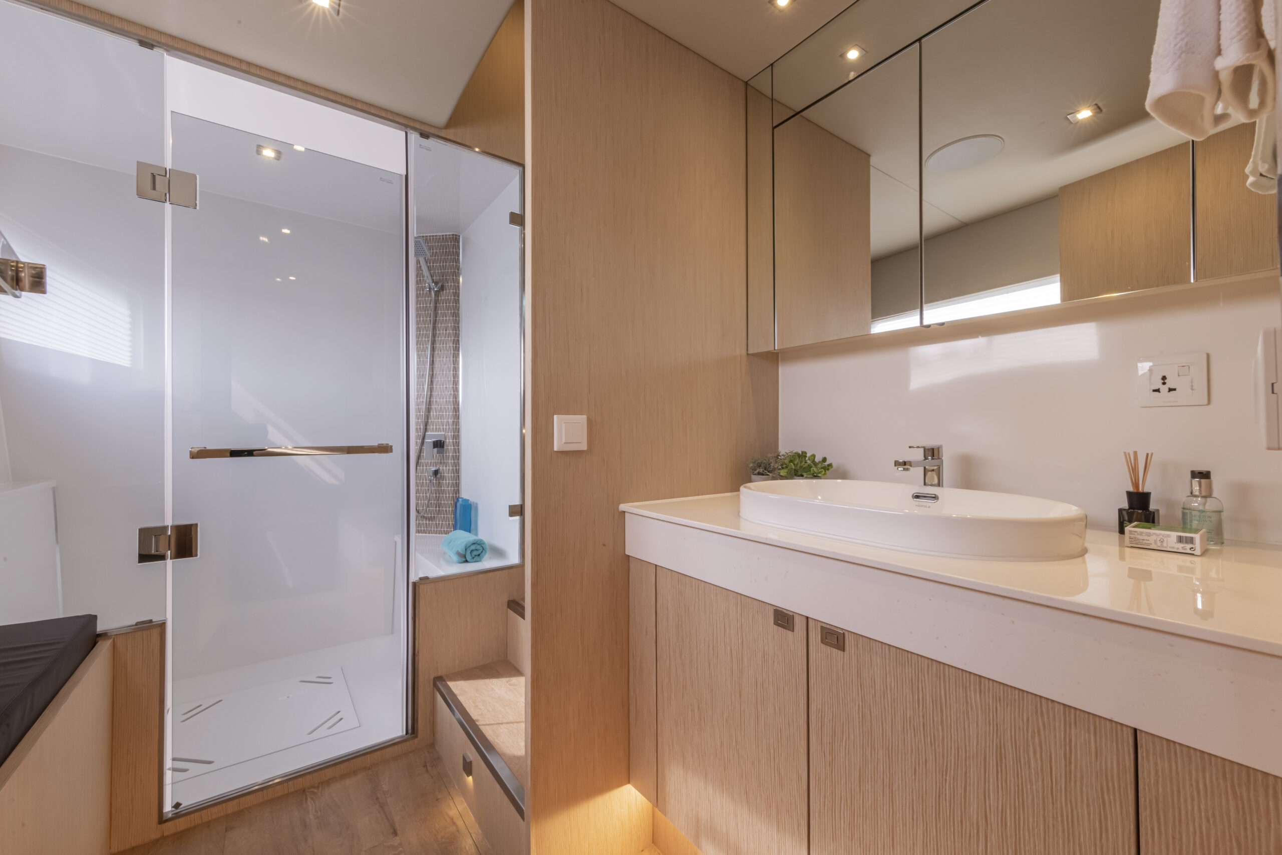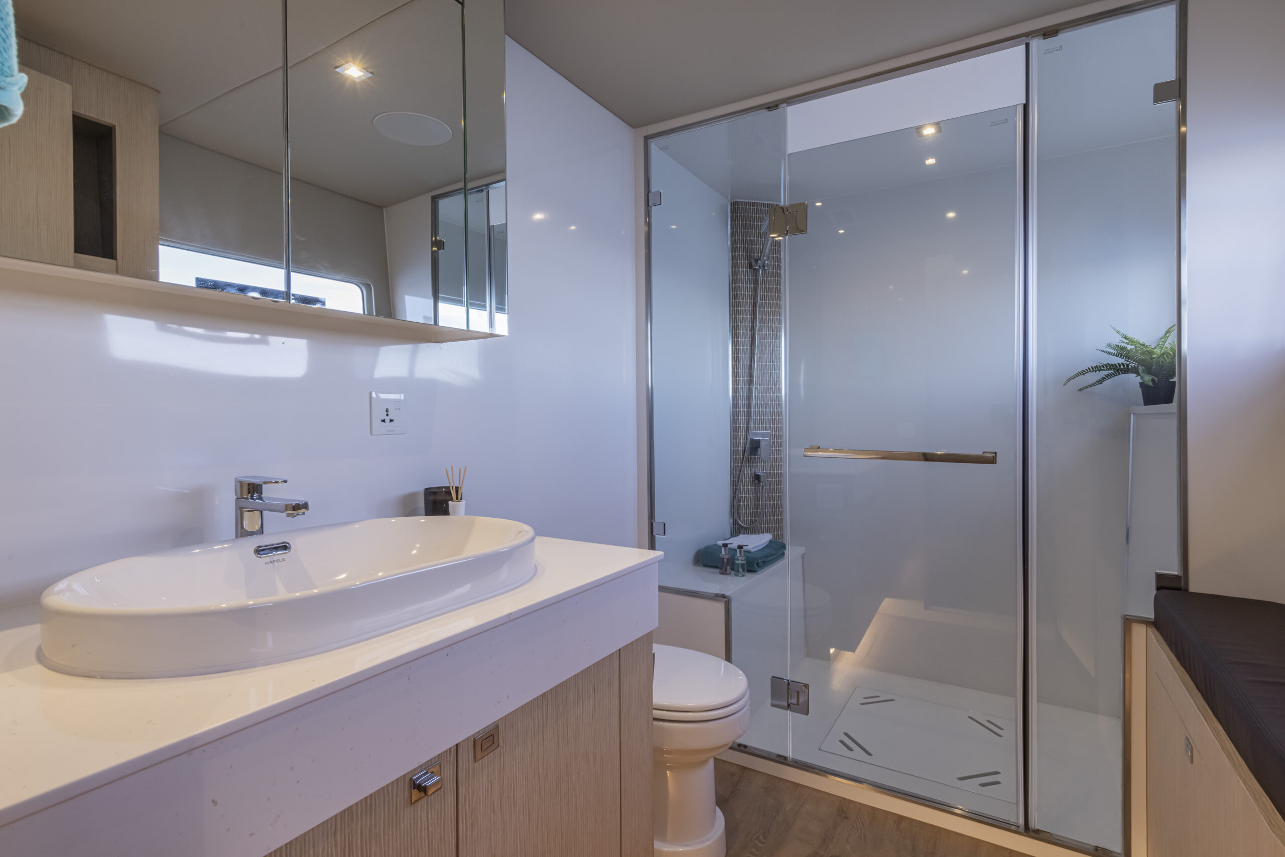 En una embarcación de estas dimensiones la imagen que ofrece la decoración y el nivel de acabados debe ser exigente y acorde a la calidad de la embarcación y el prestigio de la marca. Silent, en este sentido, tiene esta asignatura pendiente, pero ha tomado decisiones que se reflejarán en las próximas unidades, tales como la contratación de una interiorista y un gabinete de diseño italianos que otorgue el estilo y la calidad que se merece este catamarán, olvidando en buena parte la imagen espartana que predomina en los interiores.