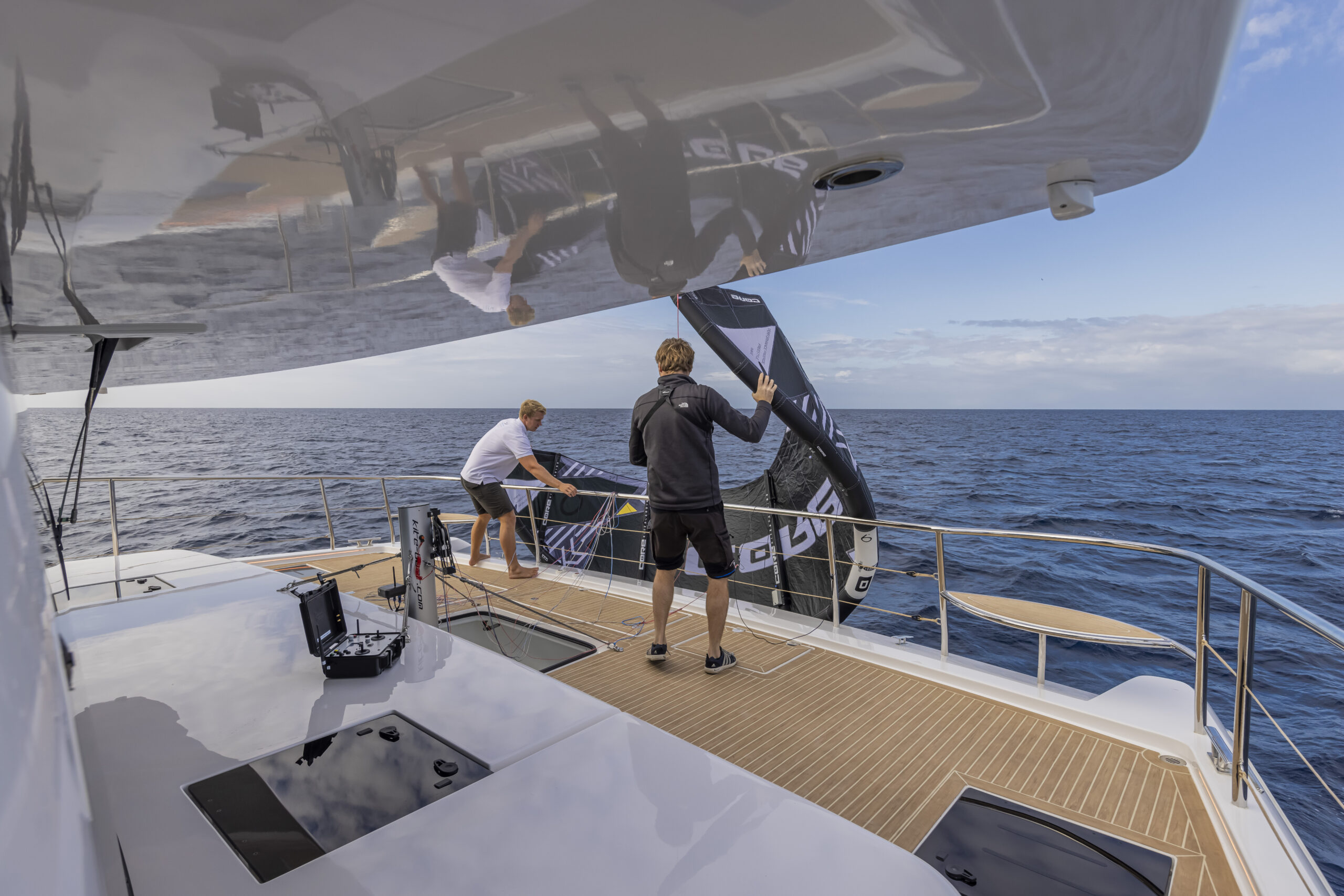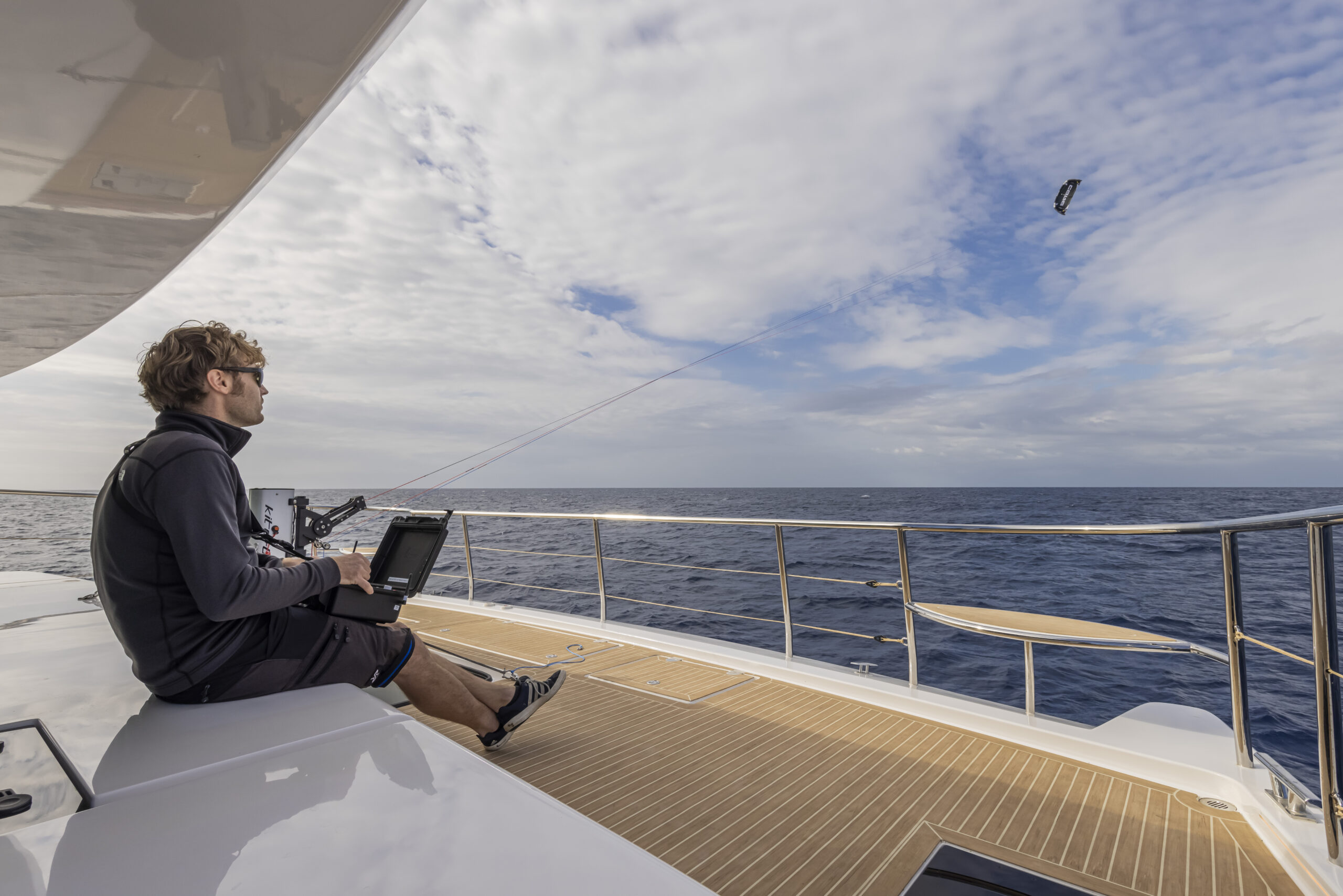 Un gran cofre bajo la cubierta de proa alberga la cometa y todos sus componentes, incluido un cabrestante eléctrico y un mástil plegable corto. El mástil que tira y regula los cabos de la cometa queda sostenido por cuatro obenques anclados en cubierta, que distribuyen las fuerzas a través de la estructura del casco. Sin embargo, en los modelos actuales (tras haber entregado ocho unidades) el mástil irá montado en una placa base dentro del cofre con el fin de dejar la cubierta totalmente despejada.