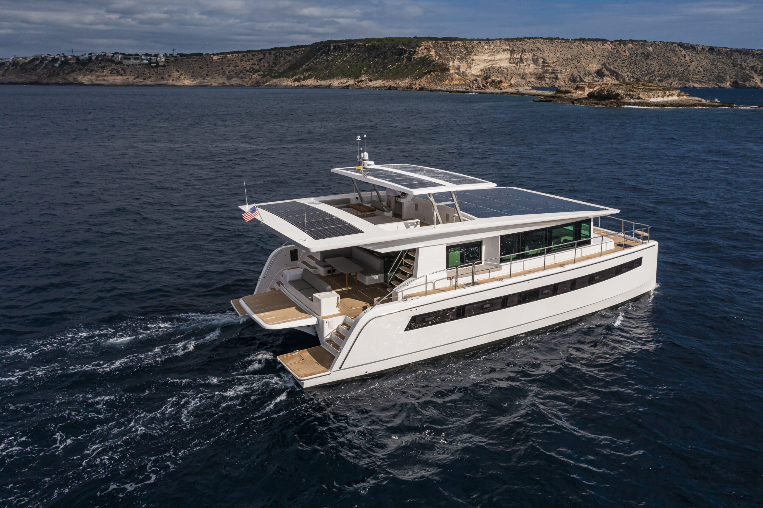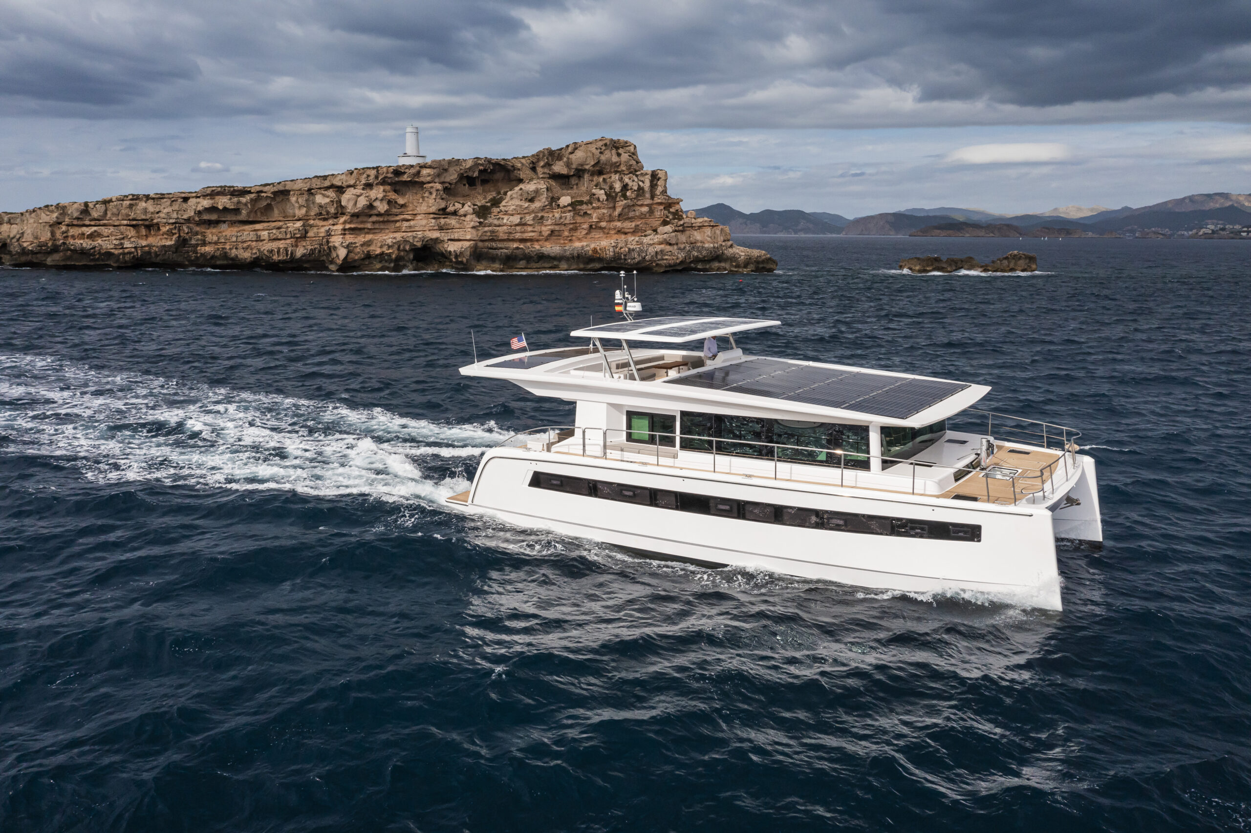 Pocos son los que se atreven a lanzar esloras de este tamaño con propulsión eléctrica. Pero Silent Yachts es uno de los nombres que ha apostado seriamente por convertirse en lo que se ha denominado “el Tesla de los mares”. Un catamarán de 60 pies, de clase A, con el máximo confort, una navegación tranquila y, sobre todo, silenciosa gracias a su avanzado sistema de propulsión y la posible ayuda de tracción mediante cometa.