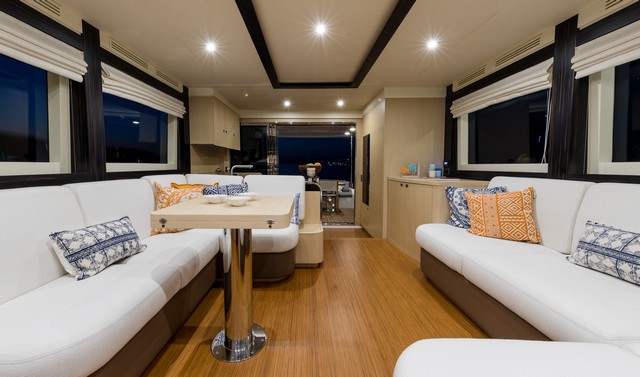 Es el segundo modelo de la marca. Cuando el astillero inició este proyecto, decidió que la amplitud en los interiores y el confort debían primar tanto en los interiores como en las zonas abiertas, sin renunciar a las últimas tecnologías tanto en las instalaciones como en el equipamiento de serie.