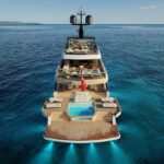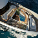 En sus 42 metros y tres cubiertas y media, el nuevo proyecto de Van OOssanen y Luca Vallebona para Sirena Yachts habilita dos piscinas a proa y a popa y permite la estiba de una gran auxiliar en proa.