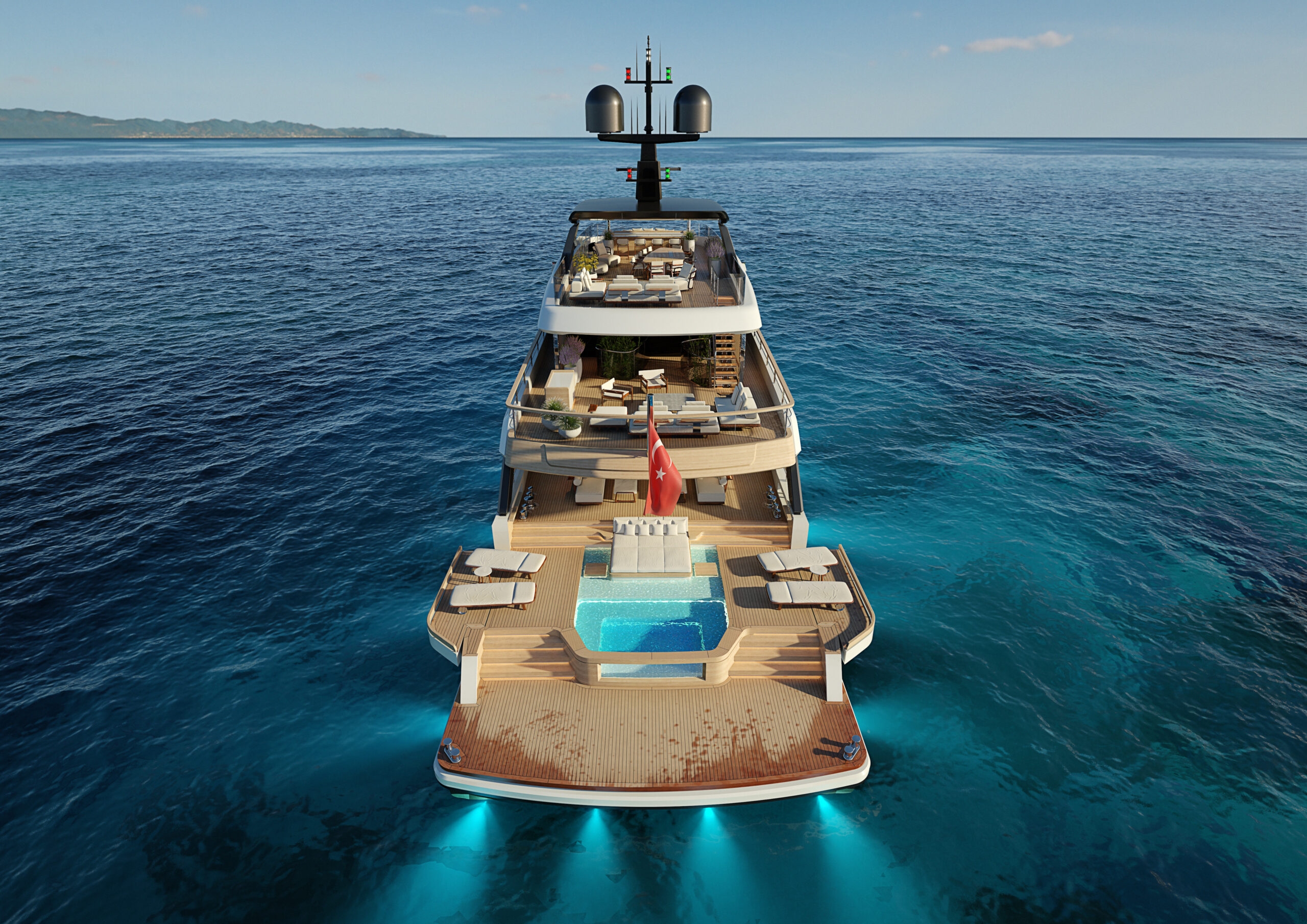 Formas estilizadas, superestructura contenida y elegancia de líneas caracterizan el proyecto de superyate de 50 metros del astillero de Estambul.