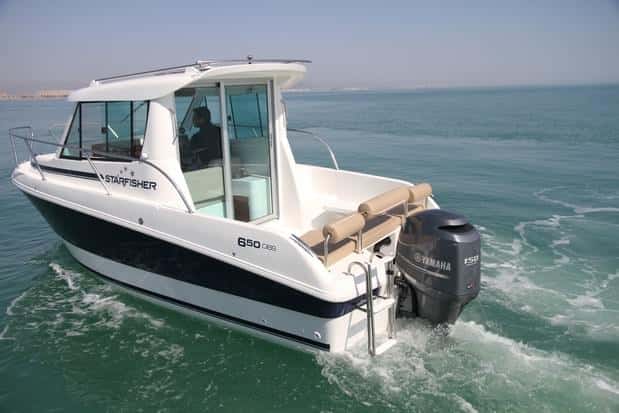 Starfisher inició hace casi tres años la gama OBS (outboard boats series) que corresponde a los modelos equipados con fueraborda. De momento en su catálogo cuenta con cuatro, dos de 790 y dos de 650, en versión timonera y Sundeck. Esta 650 OBS es una aportación interesante a su segmento por varias razones: versatilidad en la bañera, interiores espaciosos y bien ventilados, funcionalidad en la decoración y el mantenimiento y, además, la opción de un gabinete de aseo independiente, detalle interesante en esta eslora. Es un barco transportable en remolque por carretera y su categoría C6 permite navegar a 12 millas de la costa con seis personas, lo que no está nada mal.
