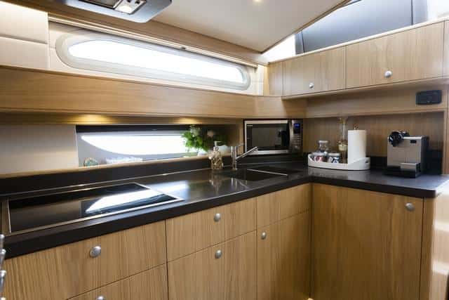 En cuanto a equipamiento el estándar que ofrece el astillero es correcto, pero si se desea dejar el barco totalmente equipado, con el techo eléctrico de Webasto, el generador de 6 kW, el inversor cargador, la segunda hélice de popa, las luces de led, la TV, la nevera para vinos y el package de navegación, entre otros, se han de añadir unos 94.000 euros más.