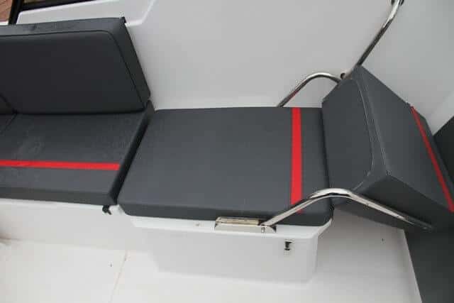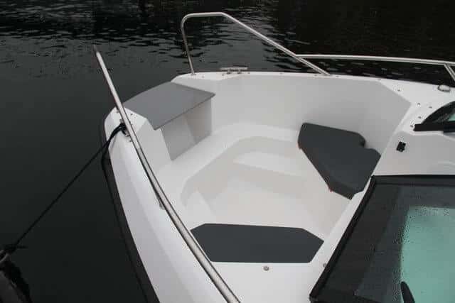 La bañera de proa dispone de un cómo paso a tierra y dos asientos con cofres debajo.