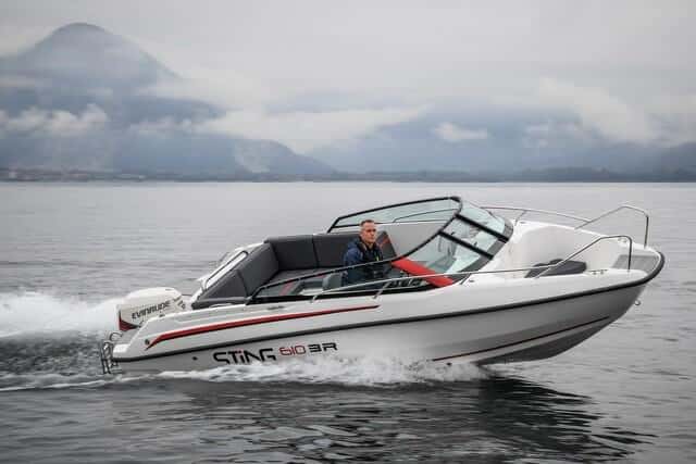 Aunque la potencia máxima admitida es de 150 Hp, con un motor de 115 Hp las velocidades alcanzadas son más que satisfactorias. Navegando en el lago Maggiore, evidentemente sin apenas oleaje, aunque con un poco de viento muy frío, la Sting se comporta excelentemente. Esta marca hereda, o mejor dicho, es la segunda marca de la firma Nordkapp, firma de gran prestigio en el segmento de las deportivas nórdicas.