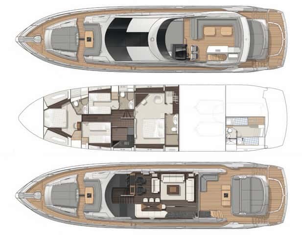 Sin embargo, además de su potencial como crucero veloz, el menor de esta serie —recordemos que Sunseeker ofrece otras cinco gamas: Yacht, Predator, Manhattan, San Remo y Portofino— refleja el compromiso de sus diseñadores para no renunciar a ninguno de los aspectos que caracterizan a un superyate destinado al pasar a bordo temporadas de vacaciones más o menos largas y al que su propietario pedirá no solo agilidad para desplazarse rápidamente de un punto a otro sino que le exigirá también que sus invitados se encuentren a gusto.