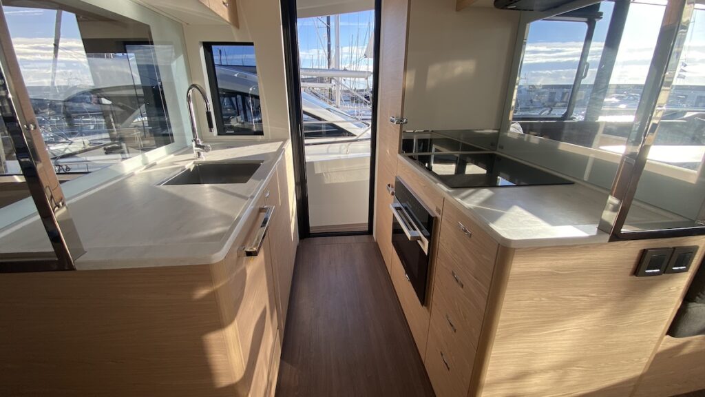 La cocina dispone de todo lo necesario para permitir largas estancias en el mar.