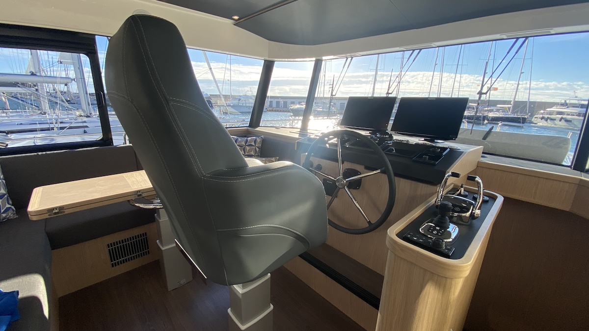 Desde el puesto de gobierno, la visibilidad, el control, la comunicación y la comodidad del timonel son notables. Estos aspectos fueron fundamentales en el proceso de diseño para crear una experiencia de navegación completa y fiel al programa de navegación de la familia Swift Trawler. Destaca también la posibilidad de montar las últimas aletas Sleipner Vector Gen 3 con motores eléctricos, que brindan más estabilidad y control de 360º con el modo “On Fond”, utilizando un 50% menos de energía.