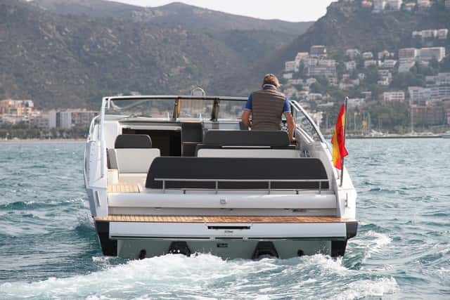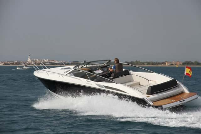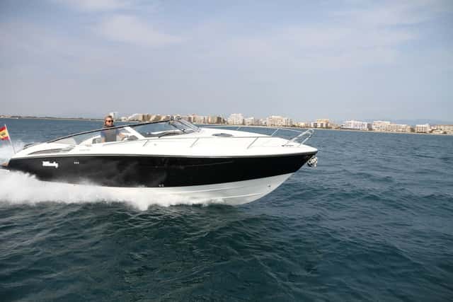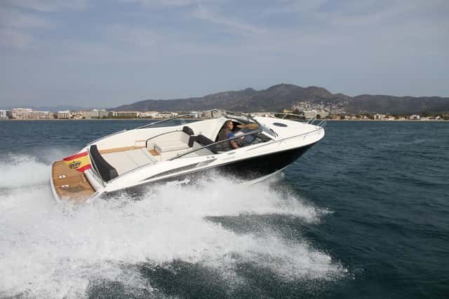 En aceleración no tiene la misma rabia en salida que si equipara los V8 de 430 Hp, obviamente, pero alcanza el planeo en 12 segundos; y en 11 más se pone por encima de los 43 nudos, lo que no está mal. Las propiedades deportivas de su casco, con una acentuada V, favorecen una navegación suave, con un paso de la ola sin el menor pantocazo, fácil de gobernar y con una aceleración progresiva, aunque esta potencia no es en absoluto excesiva para este diseño. La 31 Zonda es sumamente manejable, con una excelente respuesta en los giros cerrados, seca, bien protegida en la bañera y de navegación muy marinera.