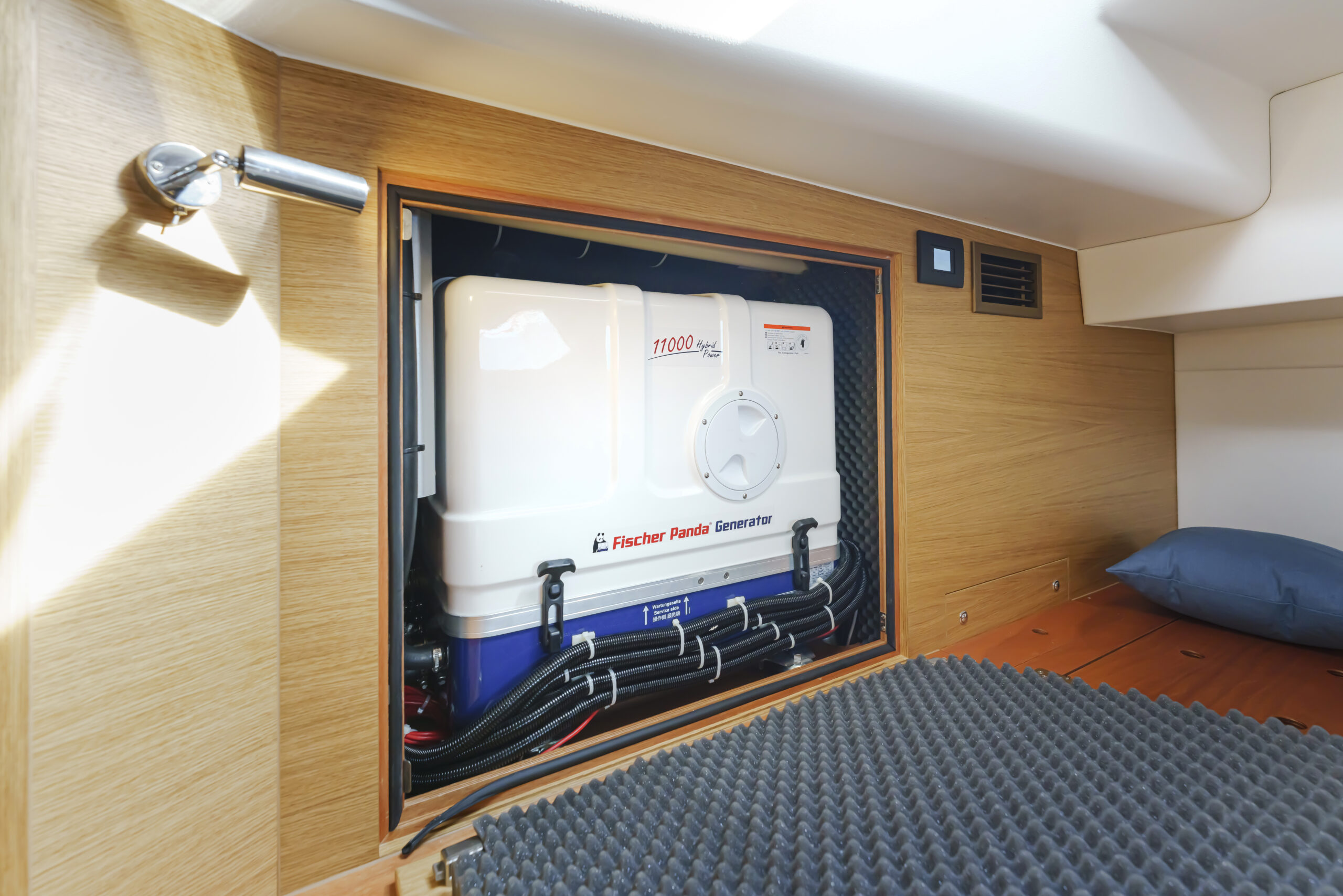 El generador está situado entre las dos cabinas de popa, pero además de la insonorización propia cuenta con la insonorización del espacio en el que está instalado.