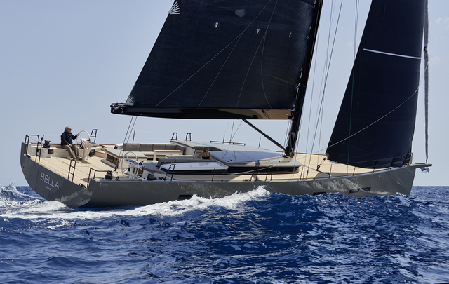 Construido con una imponente cubierta totalmente plana forrada con teca sintética tanto por razones ecológicas como de durabilidad, 29 toneladas de peso y casi 300 metros cuadrados de vela, este barco es divertido y rápido incluso con vientos ligeros. Pudimos comprobarlo durante nuestra navegación en Port Adriano, Mallorca, puerto base del Bella donde había llegado tras atravesar la bahía de Vizcaya en su primera singladura de 2.600 millas desde el astillero en Greifswald, Alemania, hasta Mallorca.