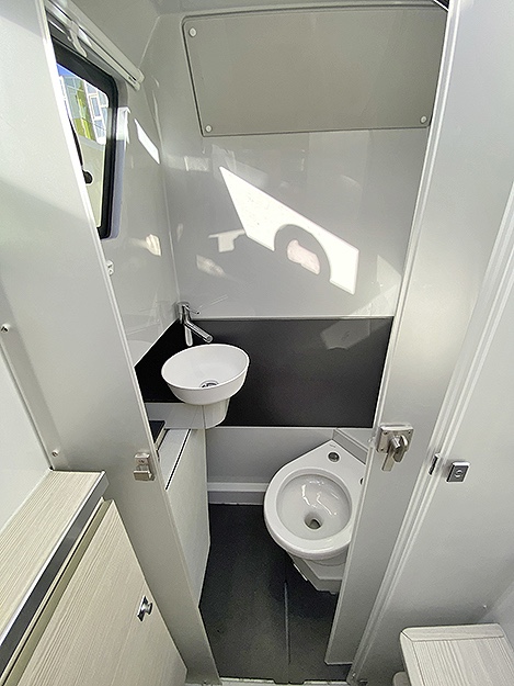 Aunque la altura libre de más de 1,85 metros es perfecta, hay que revisar la puerta de plexiglás en acordeón del baño. No sólo cierra mal, sino que además parece «barata» en comparación con el resto del barco.