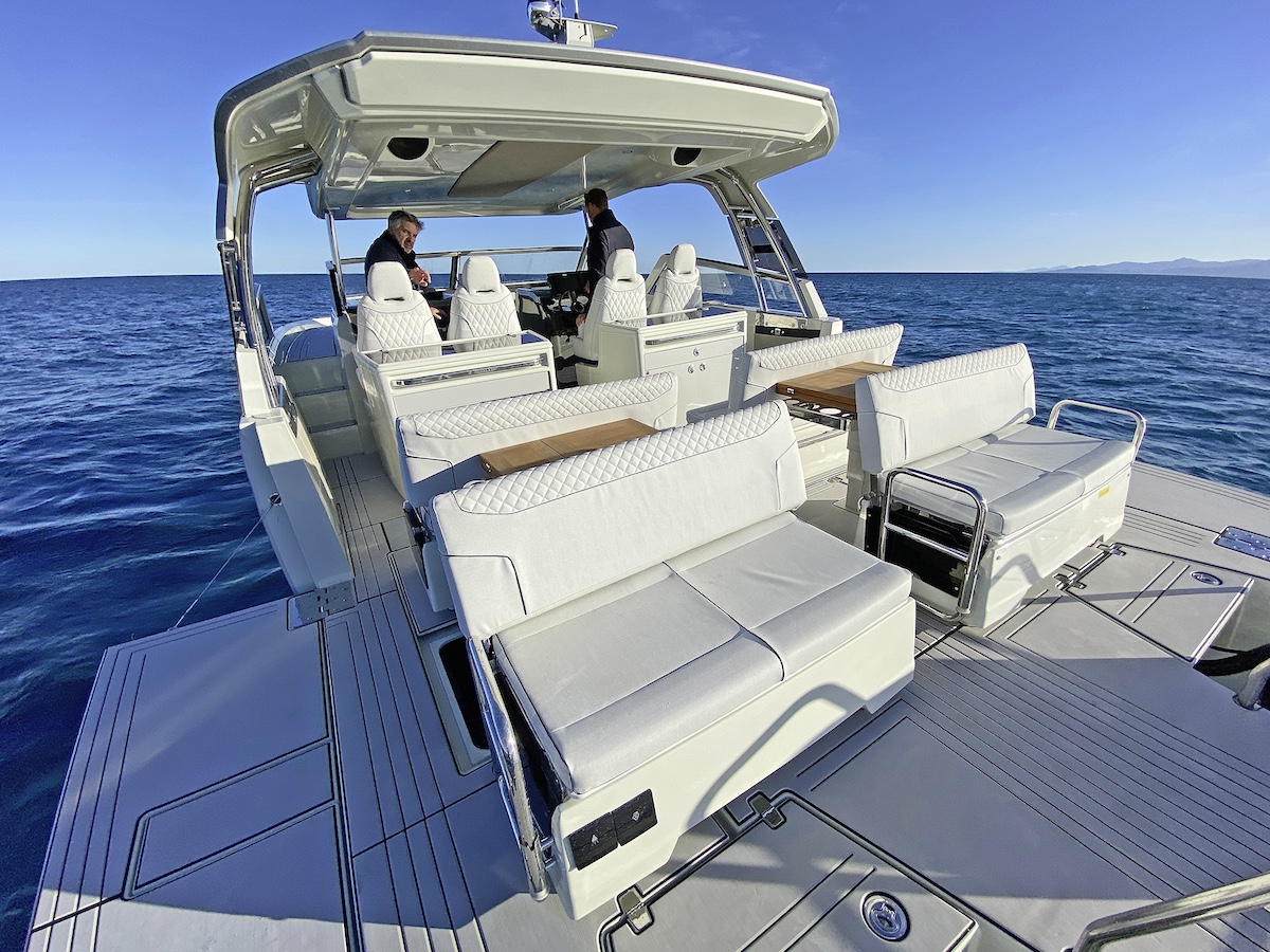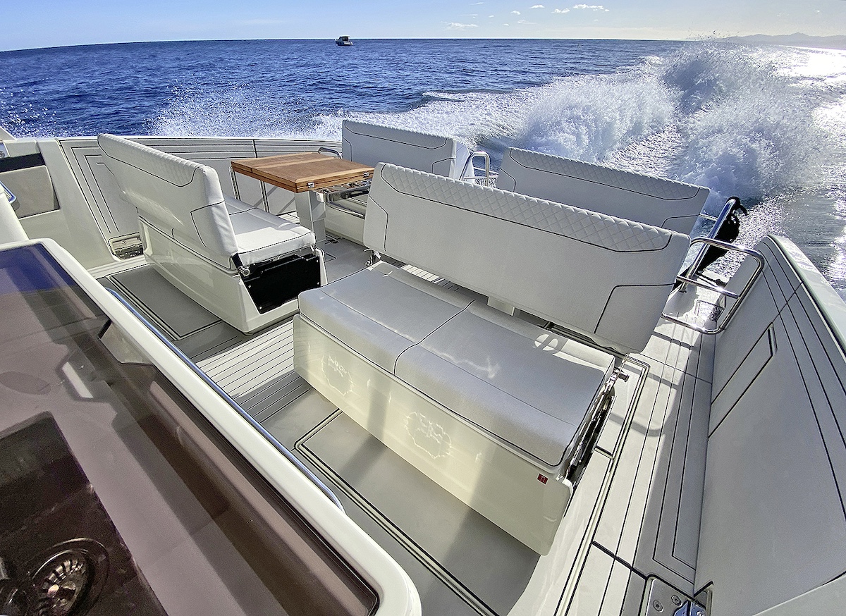 Así equipado, alcanza los 31 nudos en popa, entra en planeo estable y tarda algo menos de 11 segundos en alcanzar los 20 nudos. Este rendimiento sugiere que el motor de serie puede no ser suficiente para aprovechar al máximo las cualidades de la embarcación, especialmente cuando lleva diez pasajeros.