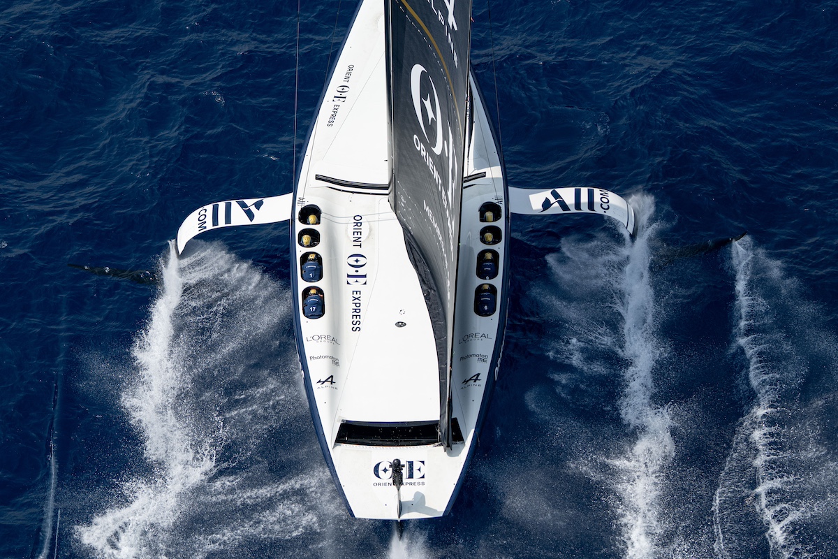 August 28, 2024. Louis Vuitton Cup, Training. ORIENT EXPRESS RACING TEAM El francés Orient Express, el primer eliminado por Pol Quintana1 de octubre de 2024