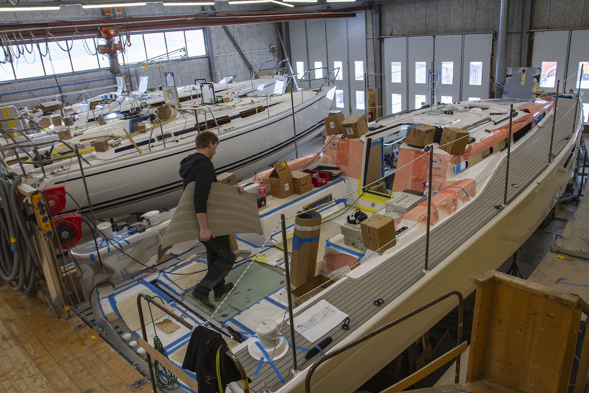En realidad, bajo varios techos, pero lo importante es que la producción desde el inicio hasta el final se realiza en las instalaciones del astillero con una gran dedicación. Laminado, carpintería, electricidad, jarcia, etc. Cada uno de los Linjett, desde el diseño hasta la entrega, ha salido del astillero de la ciudad de Norrtälje, ubicada a una hora de Estocolmo. Incluso la carpintería, en la que se destaca el uso de madera de caoba para los Linjett y roble para los Shogun, mantiene toda su producción en las propias instalaciones.