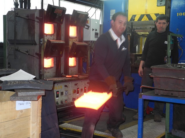 Para la fabricación de herrajes existen dos técnicas: moldeado en fundición y estampado o forja. El moldeado es cuando el metal fundido se introduce en un molde que tiene la forma de la pieza que luego se mecanizará. La técnica de forja requiere varias operaciones. Partimos de una barra de metal que se corta a la longitud deseada, luego se calienta en un horno de gas o por inducción (aproximadamente a 1.000° C) y se introduce entre dos troqueles (estampado) para dar forma a la pieza en relieve. Después, esta forma se desbarba para eliminar el exceso de material, se decapa, y luego viene la fase de pulido (brillo) y ensamblado. A modo indicativo, podemos decir que la realización de un mosquetón requiere 21 pasos en su fabricación.