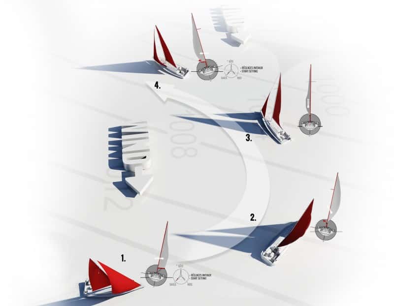 1. Auto Tacking. ajusta la vela de proa durante la virada, mientras que el patrón realiza la maniobra. Los sensores detectan la velocidad del viento y el viento aparente para mayor seguridad.