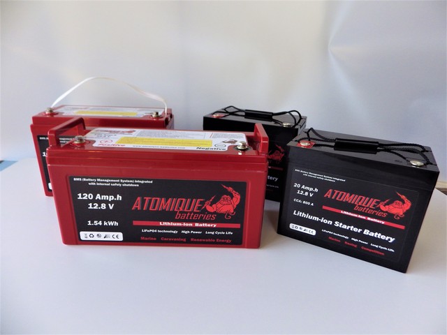 En Atomic Batteries, tenemos dos rangos completos disponibles: uno para arranque y otro para servicio (Carbon Custom). Se ensamblan en Francia con las células LFP de la marca A123 Systems. La caja es de composite de carbono, la vida útil de 5.000 ciclos y la garantía (Carbon Custom) de cinco años. Una batería de arranque viene a costar unos 1.290 euros (modelo 12 voltios 40 Ah), y una de servicio unos 1.590 euros (12 voltios 60 Ah).