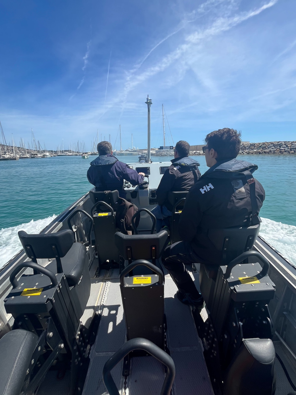Las pruebas del Cox CXO300 se realizaron a bordo de una Zodiac MilPro ZH800 equipada con dos motores.