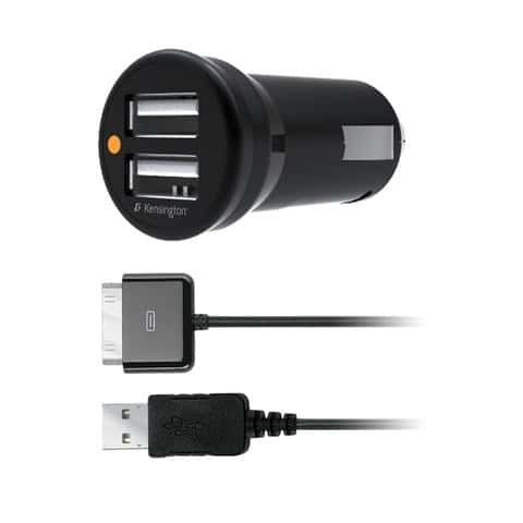 La firma Kensignton dispone de un modelo con doble salida USB, con 4,2Ah de carga, necesarios y suficientes para cargar las tabletas y equipos que más energía necesitan. Tienen 2,1 amperios de intensidad en cada conector, y son capaces de cargar dispositivos que requieren más intensidad, como el iPad, por ejemplo, sin necesidad de usar un cargador especial a medida.