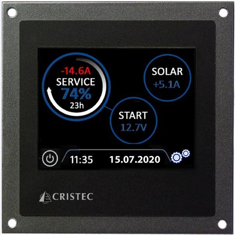 La producción de energía a bordo es una ventaja, pero es aún mejor saber cuánta se produce y cuánta se consume. Para este propósito, el nuevo controlador de batería Bat-Mon Touch de Cristec puede controlar hasta tres parques de baterías independientes o fuentes de alimentación de CC, con hasta tres lecturas de voltaje de batería adicionales. Muestra todos los datos más relevantes, como voltaje, corriente, la capacidad y la autonomía restante, así como el voltaje adicional (batería de arranque). También registra el historial de comportamiento de la batería, como la profundidad de descarga promedio, la capacidad no disponible y el número de ciclos de carga/descarga.