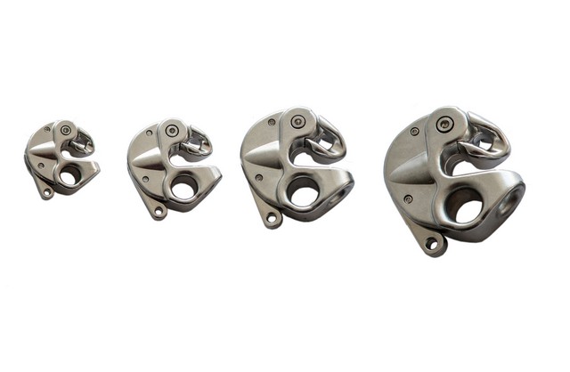 Para facilitar las tomas de rizos, preservar las roldanas y las fajas de rizo y no cargar la botavara, Facnor ha diseñado una gama de ganchos de amura HRC de alta resistencia (2,5 a 9 toneladas).