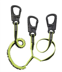 Las líneas de seguridad están hechas de poliéster extraflexible. Los colores negro y amarillo fluorescente facilitan su visibilidad y cada cordón tiene un hilo reflectante para una fácil identificación de noche. Todos tienen un indicador de carga según las especificaciones RORC-RSO 2018: cuando la línea de seguridad se somete a una carga excesiva, el indicador de sobrecarga se rompe y muestra una etiqueta que indica que debe ser reemplazada. Se presentan en tres modelos de mosquetones: de acero inoxidable, doble palanca de aluminio, y aluminio, y tres tipos diferentes de acolladores, la gama ofrece no menos de 12 combinaciones posibles.