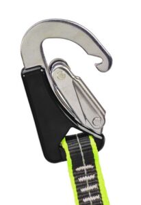 Este tipo de cinchas reduce significativamente el peso del arnés en comparación con las hebillas tradicionales de acero inoxidable. Además, este punto de anclaje de la línea de seguridad puede identificarse por la noche gracias al hilo reflectante cosido en el bucle.