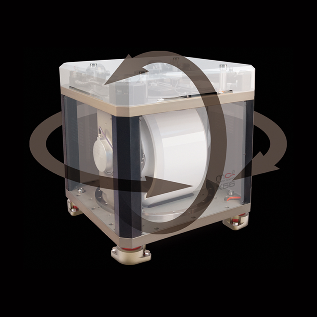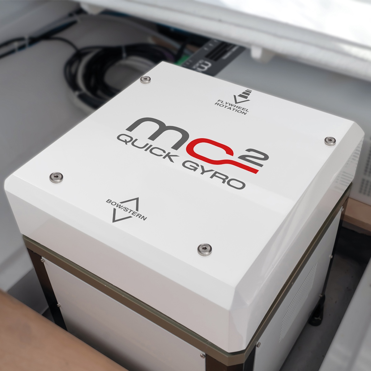El volante del giroscopio gira alrededor de un eje horizontal, distribuyendo uniformemente el peso sobre los cojinetes, a diferencia de otros modelos con eje vertical que ejercen mayor presión sobre el cojinete inferior. Gracias a esta distribución del peso, se requieren menos revoluciones y menos esfuerzo, lo que permite una estabilización más rápida. Además, debido al sistema de rotación en eje horizontal, el estrés mecánico y la fricción en los cojinetes se reducen, lo que disminuye la generación de calor. De hecho, el MC² Quick Gyro es un sistema de disipación natural, por lo que no requiere bombas de agua ni tomas de agua de mar, a diferencia de los sistemas refrigerados por agua.