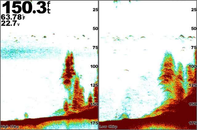 Al incorporar la tecnología CHIRP a las sondas de exploración DownVüTM y SideVüTM, el usuario dispone de una mejor separación de objetivos, una mayor nitidez e imágenes de más alta resolución de los peces, objetos y estructuras que están tanto por debajo (DownVüTM) como a ambos lados de la embarcación (SideVüTM), sin la necesidad de múltiples cajas negras.