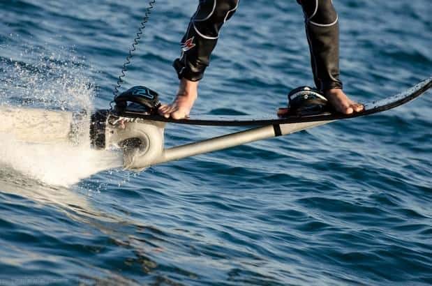 Los buscadores de nuevas emociones tendrán disponible el Hoverboard by ZR por 6.000 dólares la unidad, el precio no incluye la moto acuática.