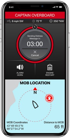 Este sistema protege al patrón del barco y hasta siete pasajeros. Si el sistema detecta que el patrón cae por la borda, 1st Mate envía alertas al dispositivo central, a la aplicación y a los terminales portátiles conectados de los pasajeros a bordo. Además, el sistema parará los motores de manera inmediata y enviará instrucciones precisas a los móviles de los pasajeros, indicando cómo reiniciar los