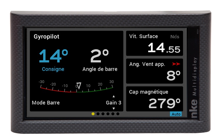 El paquete de crucero NKE está diseñado pensando en el piloto. El ordenador integra el girómetro. Un conjunto básico consta de una pantalla multigráfico, un PAD, un compás fluxgate, una veleta-anemómetro, un velocímetro, una sonda, un giróscopo, un actuador hidráulico y un sensor de ángulo de timón. El nuevo ordenador Gyropilot 3 dispone de los modos: viento verdadero y aparente, compás, barra, GPS y polar. A estas funciones podemos añadir el modo escora y racha. El multigráfico es una pantalla que permite gestionar todo a bordo, controlar al piloto y acceder a los datos de navegación y, si se dispone de AIS, gestionarlo también. El PAD es un teclado remoto para controlar, configurar las pantallas y acceder a los distintos menús. Un botón MOB activa una alarma en caso de hombre al agua. Un control remoto inalámbrico controla todas las funciones del piloto y detecta automáticamente.