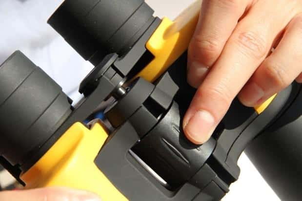 Los BINO1 tienen un agarre antideslizante y repelen el agua. La rueda central permite el enfoque variable.
