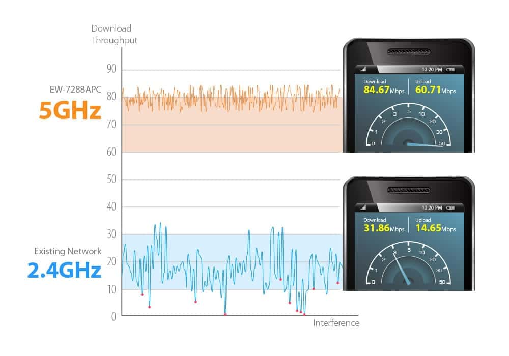 Las redes de 5GHz (802.11ac) no son tan populares como las 2.4GHz (802.11b/g), porque los equipos de 5GHz siempre han sido más caros y requieren de un mejor estudio de campo. Esto ha hecho de las redes 2.4GHz la primera elección de los usuarios y fabricantes, llegando al actual colapso en zonas de mucha confluencia.