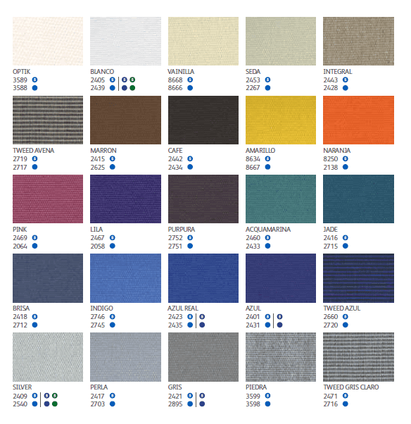 – Tejidos que cumplen de forma excelente con los exigentes requisitos de la protección solar y el uso a la intemperie.