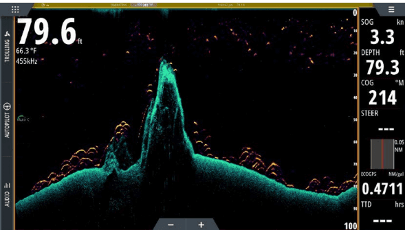Exclusivas de las pantallas NSS evo3, las imágenes de sonda mejoradas ofrecen una calidad y un alcance líderes en el sector, con imágenes casi fotográficas tanto de debajo como de los lados de la embarcación. Haciendo pleno uso del espectro de colores dinámicos, SideScan, DownScan Imaging y StructureScan 3D ahora pueden generar imágenes más nítidas con mucho más detalle y mejor contraste. Del mismo modo que el ojo humano compensa los diferentes grados de oscuridad, estas mejoras en las imágenes aumentan automáticamente el brillo en las zonas más