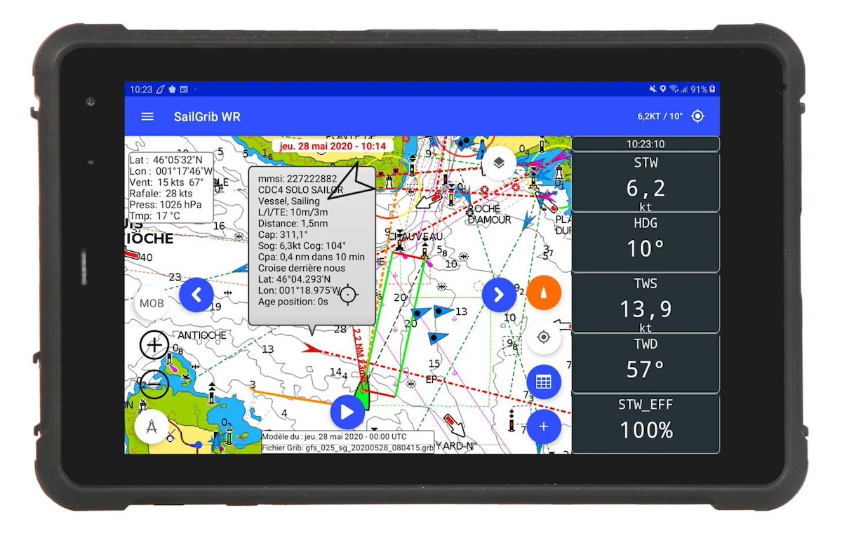 Lo he usado continuamente como único instrumento de navegación a bordo, además del AIS y el equipo de viento. Nada más. Con la aplicación de Navionics cargada lo he usado de plotter, con todas las cartas necesarias y con una precisión difícil de mejorar. Almacené toda la documentación oficial del barco: certificado de navegabilidad, seguro, registro, titulación, e incluso los DNI de los tripulantes. Al llegar a puerto, mostraba la documentación desde la tableta Sailproof y enviaba la información requerida en el mismo momento, gracias a su conectividad 5G. Instalé todas las aplicaciones meteo necesarias, y desde el mismo equipo consulté toda la información meteorológica, sin necesidad de usar el móvil u otro equipo.