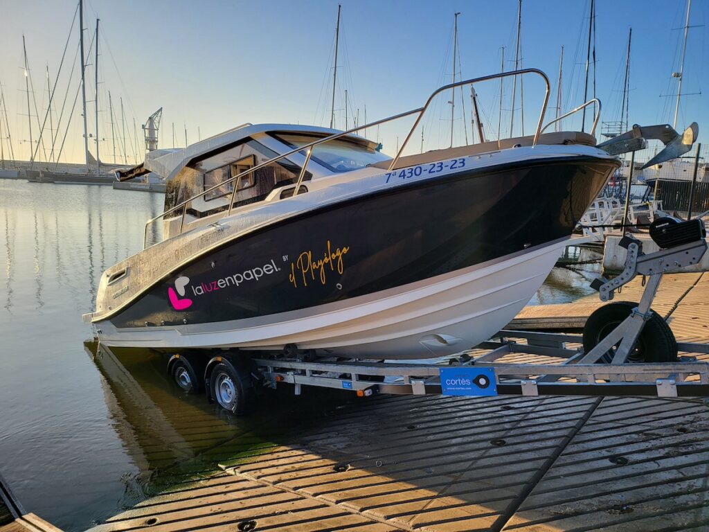 Llevar un barco a remolque no es como llevar una caravana o cualquier otro tipo de remolque. Aquí hay que prestar especial atención a la forma en que fijamos el barco al remolque para que no se desplace durante su transporte. Pero no solo eso, también hay que prestar especial atención a los accesorios del barco, tales como colchonetas del solárium, cañas de pescar, bichero, remos, cubos… Debemos tener en cuenta que los remolques náuticos no vienen del todo preparados para cualquier tipo de embarcación y en función de cada una hay que añadir accesorios tales como cinchas, cadenas de seguridad… y la placa V20, siempre y cuando sea necesaria.