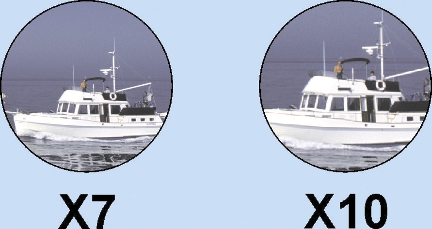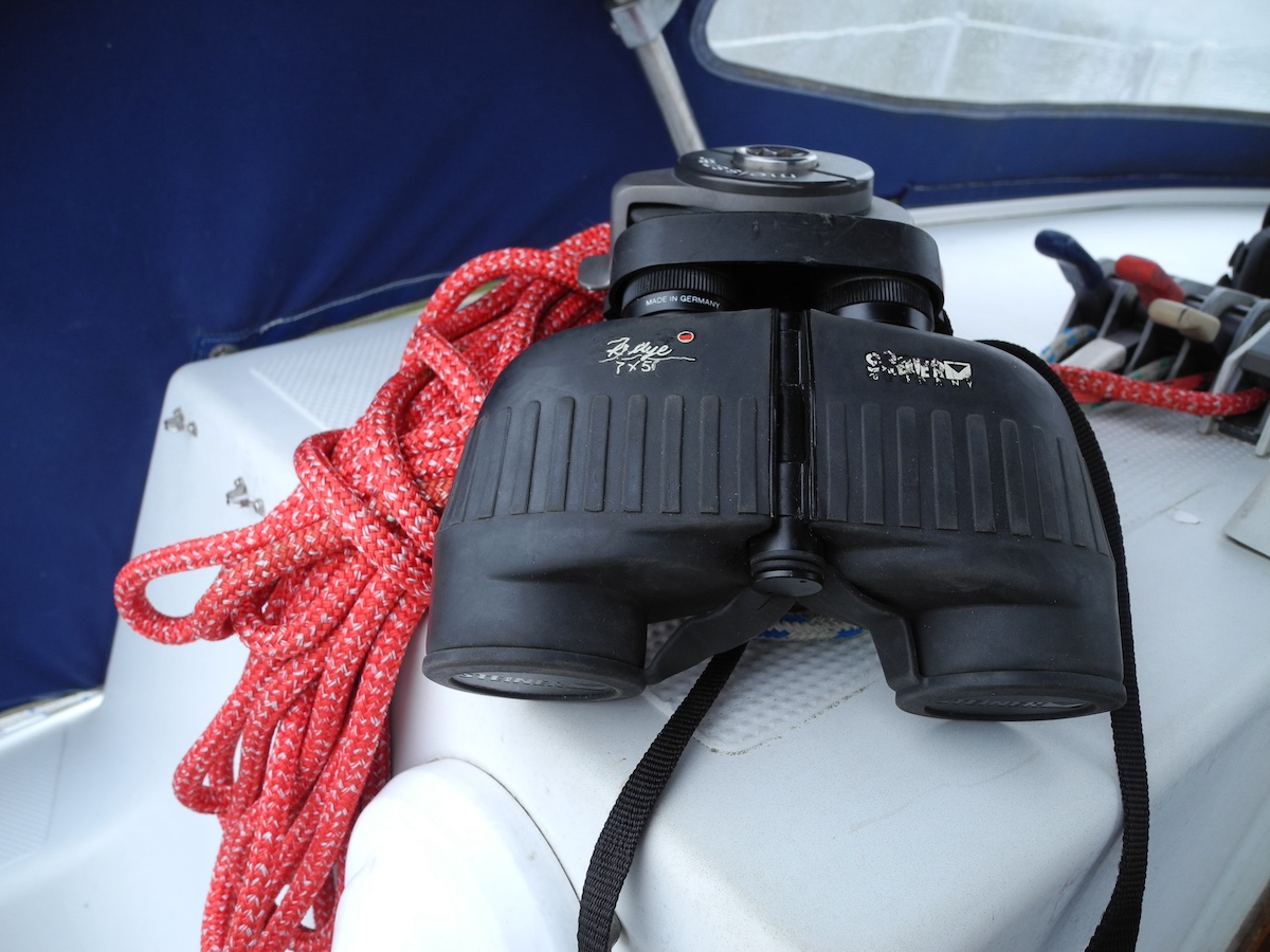 Un barco se mueve, por lo que se recomienda limitar el aumento a entre 7 y 10. Respecto a la luminosidad, un objetivo de 50 mm es el más adecuado. Existen en el mercado binoculares con estabilización de imagen, que son muy útiles cuando las condiciones del mar son adversas.