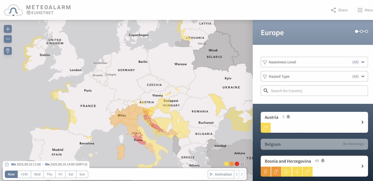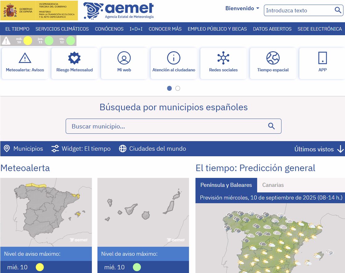 - Consulta diariamente los boletines meteorológicos de AEMET, IPMA o Météo-France.
