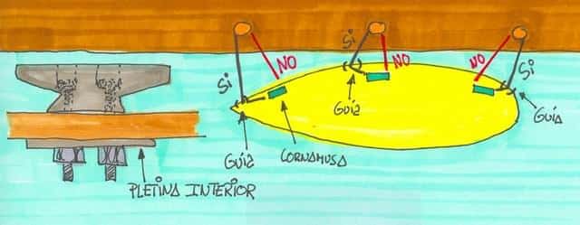 La resistencia del anclaje de las cornamusas es decisiva en todo este proceso. Siempre serán realizados con tornillos pasantes que trabajarán contra una bien dimensionada pletina interior; olvídese de las arandelas por más anchas que sean éstas. Si el barco está construido en sándwich, deberá existir un núcleo resistente de madera para no dañar las pieles de fibra con el esfuerzo.