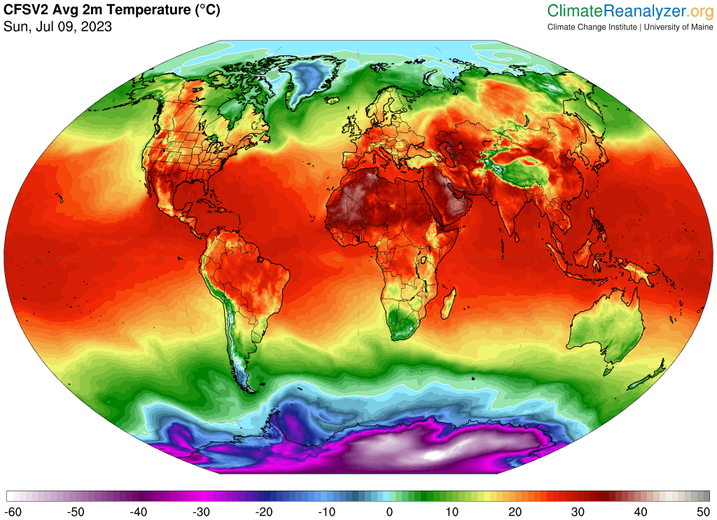 De hecho, la primera semana de julio se convirtió en la más cálida jamás registrada a escala planetaria. El 6 de julio, fue el día más cálido en la Tierra (hasta la edición de este artículo), con una temperatura media de 17,23 ºC, según el Centro Nacional de Predicción Ambiental de Estados Unidos (NCEP). La media climática de temperatura para esas fechas es de 16.20ºC. Este verano se que puedan sucedermás récordsde temperatura planetaria.