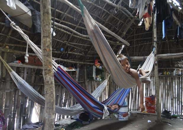 Las cabañas donde viven están hechas de caña y el techo lo tapan con hojas de palmera. Duermen colgados de hamacas y la poca electricidad que consumen la consiguen gracias a placas solares. El agua dulce la extraen de pozos naturales, que usan tanto para consumo como para higiene personal.