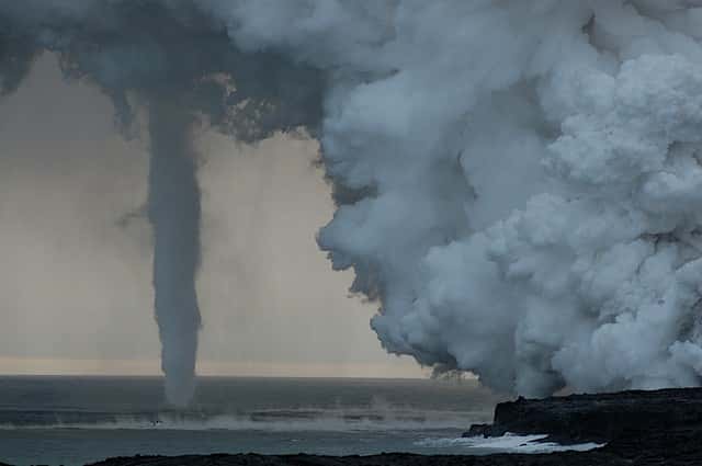 Los rayos pueden producirse en las nubes de cenizas de las erupciones volcánicas, o pueden ser causados por violentos incendios forestales que generan polvo capaza de crear carga estática.