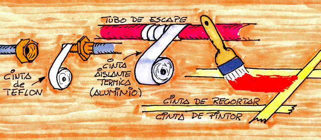 Cinta de aluminio: cinta especial para trabajar en zonas de altas temperaturas. Un poro en los escapes del motor puede sellarse con cinta de este material muy aislante térmicamente.